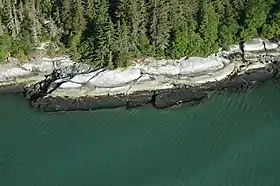 The Juneau gold belt is located in the southeastern portion of the U.S. state of Alaska. This belt is approximately 100 miles (160 km) in length, north/northwest-trending,[1] and extends from Berners Bay southeastward to Windham Bay, 60 miles (97 km) southeast of Juneau, and includes Douglas Island.[2][3]: 25 The belt contains over 200 gold-quartz-vein deposits with production nearing 7,000,000 ounces (200,000,000 g) of gold.[4] More than three-quarters of Alaska's lode gold was mined from the Juneau gold belt.[5]