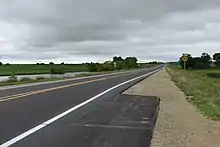 The route has changed little, but in August 2001, work began on a $17.5 million (equivalent to $27.8 million in 2022[13]) project to reconstruct the entire length of K-150. New bridges were built, asphalt shoulders were added and the sight distances were improved. Work was completed by August 2003.[14] In 2012, KDOT decided that the western terminus was to be rebuilt as an enhanced roundabout.[15] Construction on the $5.416 million (equivalent to $6.57 million in 2022[13]) enhanced roundabout at the western terminus began in June 2015. The roundabout was enhanced by leaving in place the shooflies that were installed to take traffic around the site during construction. This allows oversized trucks that wouldn't fit on the roundabout to pass.[16][17] K-150 was closed from early September 2015, to late December 2015, and traffic was detoured south along US-77 to make room for construction on that section of the roundabout. The roundabout was completed and open to traffic in December 2015.[18]