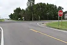 In Stafford County, K-19 originally turned north on present day Radium Road towards Radium, then followed NW 150th Street east to end at US-281, passing just to the south of Seward along the way.[19] In a September 25, 1946 resolution, the turn to the north at Radium Road was eliminated and K-19 was realigned to continue eastward to its current eastern terminus.[20][21]