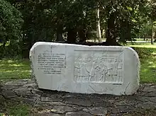For the centennial of the event, a memorial was created in order to mark the spot for the future generations. A white marble block, created by Mihailo Paonović, was put in place in 1967, with a carved drawing by A. Srefanović. A celebration accompanied the occasion.[2]
