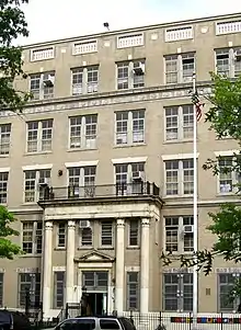 The New York Public Library (NYPL) operates two branches near Kingsbridge. The Van Cortlandt branch is located at 3882 Cannon Place. The two-story, 5,800-square-foot (540 m2) branch opened in 2019, replacing a smaller one-story branch a few blocks away, which opened in 1969 and consisted of a single room.[35] The Kingsbridge branch is located at 3874 Sedgwick Avenue. The current two-story building is the branch's fourth structure since the establishment of the Kingsbridge Free Library in 1894. McKim, Mead & White designed a Carnegie library for Kingsbridge when the NYPL took over the Kingsbridge branch in 1905; a third library structure was built at 280 West 231st Street in 1959, across from the current site.[36]