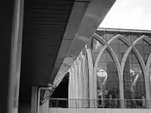 Work on the Subang International Airport started in 1961 and finished in 1965 at a cost of $64 million. Its deceptively simple design consisted of a roof composed of floating concrete shells that was held aloft by mushroom-shaped columns. Loo's business partner (in the BEP practice) and friend C.H.R Bailey designed the airport one of many collaborations that the two architects undertook in the 1950s and 1960s. The open structure also featured a massive circular ramp, reminiscent of Berthold Lubetkin's penguin pavilion in London. Most of the structure was removed during a major reconstruction in 1983.[3]