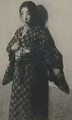 Kinoshita belonged to theatre movement called shingeki (新劇).[7] In Shingeki history, following World War II there were some large companies such as Haiyūza (俳優座) and Bungakuza (文学座) in addition to smaller groups of passionate theatre people.[7] One small groups was called Budō no Kai (ぶどうの会), which was formed in 1947 by Yasue Yamamoto, with the help of some of her colleagues.[7] The group’s name became both a symbol of Greek tragedy and something that their young audiences could relate to.[7] Their activities soon moved from radio to theatre.[7] In January 1950, Yuzuru (Twilight Crane), which was written by Kinoshita, premiered. The play was produced frequently during the postwar period.[7]