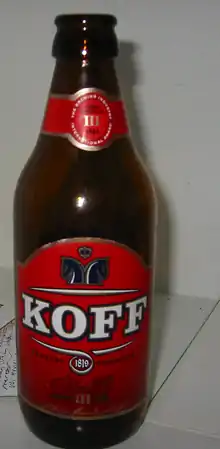Koff is the brand name used by Sinebrychoff to market a range of lager type beers. Koff, along with Karhu is one of the most sold beer brands of Sinebrychoff and Finland. Sinebrychoff's beer's biggest market rivals are the products of another large brewery Hartwall, namely Lapin Kulta and Karjala, as well as the beer of Olvi brewery: Olvi.