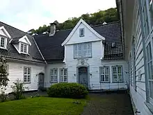 A number of significant buildings are located along Kong Oscars gate. The street's south-eastern end is at Stadsporten, the old city gate of Bergen. The intersection between Kong Oscars gate and Strømgaten, further north, is the location of Zander Kaae's Foundation (Zander Kaaes stiftelse, Kong Oscars gate 67), built in the 18th century for a charity and now the rooms are rented to students. On the west side of the intersection is St. Jørgens hospital, an 18th-century leprosy hospital and today a leprosy museum. Directly north of the museum is Danckert Krohn's Foundation, another charity for the elderly, built in the late 18th century.[2][3]