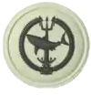 The badge depicts a great white shark swimming past the Neptune trident, which is mounted on the mouthpiece of an Oxygears 57 and is enclosed within the tubes of the Oxygears 57