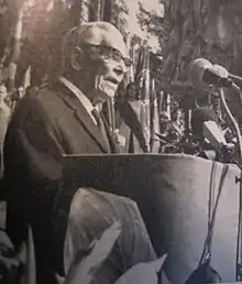 After paroled in 1921, Kulo joined the communist movement and eventually became the party secretary of the Socialist Workers' Party of Finland. He was also a member of the illegal Communist Party of Finland. Kulo was arrested in the 1923 communist raids and prisoned until 1928. During his sentence Kulo distanced from communism and joined the democratic socialist Left Group of Finnish Workers. Since the late 1930s, Kulo was a member of the Social Democratic Party.[1] During the Continuation War, Kulo was active in its "peace opposition" against Finland's war policy and the party leader Väinö Tanner.[2] After the war, Kulo was the chairman of Socialist Unity Party 1947-1948 and People's Democratic League 1948–1966.[1]