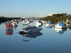 Kyeemagh is located on the southern bank of the Cooks River and the eastern bank of Muddy Creek. Lady Robinson Beach and Cook Park run along the eastern border. A small group of shops is located in Bestic Street near General Holmes Drive. Other parks include Kyeemagh Reserve and Lance Stoddert Reserve.