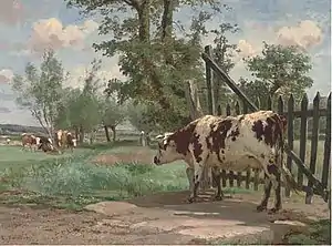 In 1872, following the annexation of his hometown by the Germans, he chose French citizenship, settled permanently in Paris and opened a studio near the Opera.[3] He was awarded medals at the Salon in 1880 and 1884. He also exhibited and won awards in London and Melbourne. At the Exposition Universelle (1889), he received a gold medal. He was known for painting en plein aire. His favorite places were along the Seine, in Sologne and in Charolais, home to several popular breeds of cattle and sheep.[4]