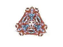 The enzyme is a hexamer, forming the largest structurally known ketol isomerase, and has no sequence or structural similarity with other ketol isomerases. The structure was determined by X-ray crystallography at 2.5 Angstrom resolution.[1] Each subunit of the hexameric enzyme is wedge-shaped and composed of three domains. Both domains 1 and 2 contain central parallel beta- sheets with surrounding alpha helices. The active centre is shared between pairs of subunits related along the molecular three-fold axis, with domains 2 and 3 from one subunit providing most of the substrate-contacting residues.[1]
