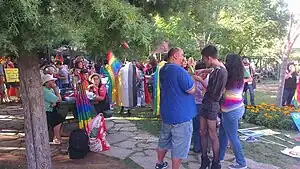 In June 2019, the 7th Izmir Pride, the 3rd Antalya Pride and the 27th Istanbul pride were banned by the cities governors.[61][62][63] Amnesty International last week called for Turkey to lift the Pride bans. However, days later a court suspended Izmir pride week ban.[64] In June 2019, 17 people were detained during press statement over Pride ban in Turkish police dispersed a crowd gathered in the city of Izmir for a public press statement over the governorate's pride parade ban and detained 17 people, after the group read their press statement.[65][66]