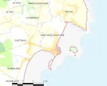 Saint-Vaast-la-Hougue is part of the canton of Val-de-Saire and the arrondissement of Cherbourg.[3] The town had a population of 1,712 in 2019.[8] It is located on the north east coast of the Cotentin peninsula and home to a marina. The town is crossed by the Saire.
