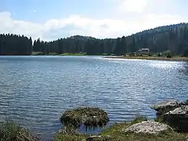 Lac Genin is a lake in the Ain department, France. Its surface area is 8.15 ha at an elevation of 850 m. The lake is fed by underground sources.