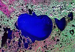 Lake Labaz (Russian: Лабаз) is a large freshwater lake in Krasnoyarsk Krai, north-central part of Russia. It is located at 72°17′42″N 99°36′19″E / 72.29500°N 99.60528°E, northwest of the Khatanga River and the Anabar Plateau. The lake has an area of 470 km2 (180 sq mi). The Kegerdi River flows from the lake.[1]