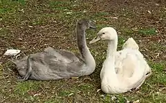 ![]() Left, mute swan cygnet (grey feet turning darker with age);