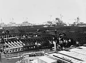 The Landing Craft Tank (Rocket) or LCT(R) was developed from the British Mk.2 and Mk.3 Landing Craft Tank (LCT) during the Second World War. It was designed to saturate beaches with either 972 or 1,044[1] rockets prior to the landing of troops. Used by both British and U.S. forces, the craft saw service in the Normandy landings, the Mediterranean and the Far East.
