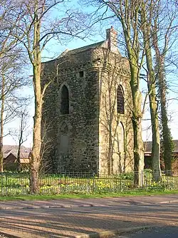 The foundations of the Stanecastle chapel were found a by Mr W Gray when digging drains. Judging from the foundations, the building must have been of considerable extent. The 1858 OS map marks the site of a nearby cemetery and an intriguing subterranean passage or vault four feet below the surface; nothing is visible at the site today. A small village once existed here and Stanecastle may have been the site of a nunnery before it became the home of the Francis family. In the 17th century the twenty shilling lands of old extent called Brydskirk are recorded, but with no mention of a chapel.[8]