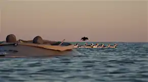 Layout boat hunting is a sub specialty of traditional waterfowl hunting which is done in a low-profile un-motorized boat with a unique design that allows the hunter to maintain a close position to the water in order to conceal them in open water areas that are frequented by diver and ocean ducks. This is a sport with a long history going back to market hunters and boat-mounted punt guns. The main focus of the layout boat is to put the hunter very close to the decoys, or even among them, for additional concealment. This makes for dramatic hunting scenarios where a decoying bird comes extremely close to the hunter and boat.