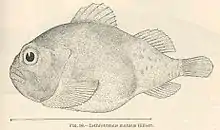 Lethotremus is a monospecific genus of marine ray-finned fish belonging to the family Cyclopteridae, the lumpfishes or lumpsuckers. This genus is found in the northern Pacific Ocean. Following a 2017 taxonomic review by Lee et al., the species Lethotremus awae was reclassified as a species of Eumicrotremus, leaving the genus monotypic with Lethotremus muticus as its only species.[1][2] Also known as the docked snailfish[3] (a somewhat misleading name as this species is not one of the true snailfish in the family Liparidae), is a species of lumpfish native to the Northeast Pacific. It is known from the Bering Sea and the Aleutian Islands, where its range extends to Unimak Pass, and it occurs at a depth range of 58 to 330 m (190 to 1082 ft). It is a benthic species that reaches 11.5 cm (4.5 inches) in total length. It can be found on substrates of mud, rock, or gravel, and it is currently the only known species of Lethotremus, following a reclassification of the second described species in the genus as Eumicrotremus awae.[4][5]
