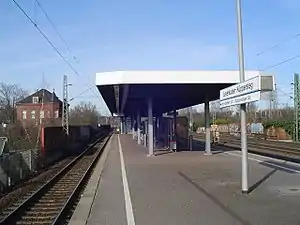 Leverkusen-Küppersteg is a railway station on the Cologne–Duisburg railway, situated in Leverkusen in western Germany. It is classified by Deutsche Bahn as a category 5 station.[1] It is served by the S6 line of the Rhine-Ruhr S-Bahn at 20-minute intervals.[5][6]