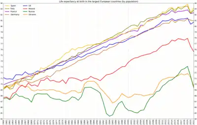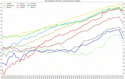 - ↑ "OECD Data: Life expectancy at birth". OECD. 17 December 2023.