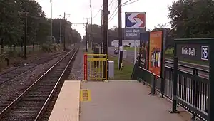 Link Belt station is a station along the SEPTA Lansdale/Doylestown Line. It is located at County Line Road & Walnut Street in Chalfont, Pennsylvania. It is located on the Montgomery County side of County Line Road, north of Pennsylvania Route 309, and sits next to the popular "Whistle Stop Park." In FY 2017, Link Belt station had a weekday average of 23 boardings and 20 alightings, making it the least used station in the SEPTA Regional Rail system.[2]