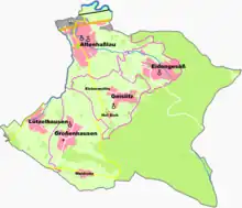 Linsengericht consists of the Ortsteile Altenhaßlau, Eidengesäß, Geislitz (with Hof Eich and Eichermühle), Großenhausen (with Waldrode) and Lützelhausen.