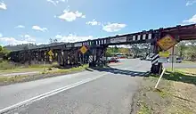 Lismore railway underbridges is a heritage-listed group of railway-associated structures in Lismore, New South Wales, Australia erected for the 1894 creation of that section of the Murwillumbah railway line. This item (as no. SHR 1044) was added to the New South Wales State Heritage Register on 2 April 1999.[1] It comprises the steel frame Leycester Creek railway bridge that carries the railway over Leycester Creek, plus associated timber (trestle) structures that cross Union Street in South Lismore, and Terania Street and Alexander Parade in North Lismore. As at October 2023, the Leycester Creek railway bridge was closed to the public for safety reasons while the Terania Street crossing, normally open to vehicular traffic, was temporarily closed to allow maintenance work to be carried out.[2]