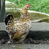 This is a list of chicken breeds usually considered to be of Belgian origin.[1][2] Some may have complex or obscure histories, so inclusion here does not necessarily imply that a breed is predominantly or exclusively from Belgium.The Campine is included here, but in Belgium is not considered to be a breed but, since 1926, to be identical to the Braekel.[3]