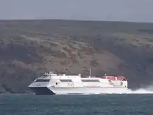 The Stena HSS 1500 is a catamaran that provides fast ferry service at 40 knots (74 km/h) across the Irish Sea.