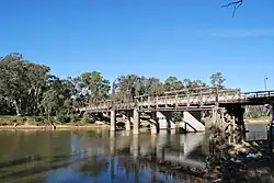 Mulwala Bridge36°00′20″S 146°00′18″E / 36.00556°S 146.00500°E / -36.00556; 146.00500 (Mulwala Bridge)1924Crosses Lake Mulwala, 488 metres (1,601 ft)
