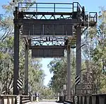 Gonn Crossing Bridge35°30′13″S 143°57′24″E / 35.50361°S 143.95667°E / -35.50361; 143.95667 (Gonn Crossing Bridge)Murrabit to Ballbank1926103 metres (338 ft) Lift-span road/rail bridge, opened as part of the Stony Crossing railway line; road only since the railway closed in 1964.