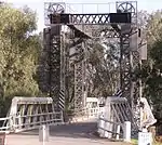 Abbotsford Bridge34°06′50″S 141°59′17″E / 34.11389°S 141.98806°E / -34.11389; 141.98806 (Abbotsford Bridge)Yelta to Curlwaa1928235 metres (771 ft) long, single lane lift bridge