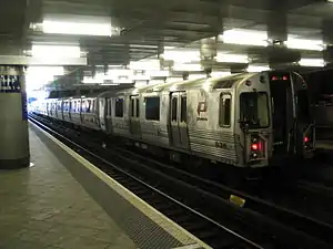 Substantial growth in PATH ridership during the 1980s required expansion and improvement of the railroad's infrastructure. The Port Authority announced a plan in 1988 that would allow stations on the Newark–WTC line to accommodate longer eight-car trains while seven-car trains could operate between Journal Square and 33rd Street.[96] Two years later, it announced a $1 billion plan to renovate the PATH stations and add new cars.[97] Video monitors were installed in stations to make money from advertising.[98] PATH also sought a fare hike, even though that would reduce its per passenger subsidy, to reduce its $135 million annual deficit.[99] By 1992, the Port Authority had spent $900 million on infrastructure improvements, including repairing tracks, modernizing communications and signaling, replacing ventilation equipment, and installing elevators at seven stations per the Americans with Disabilities Act of 1990 (ADA).[100]