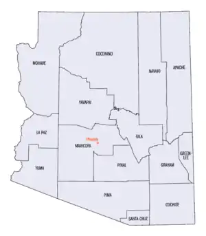 | Apache - Cochise - Coconino - Gila - Graham - Greenlee - La Paz - Maricopa (Phoenix) - Mohave - Navajo - Pima - Pinal - Santa Cruz - Yavapai (Prescott) - Yuma |