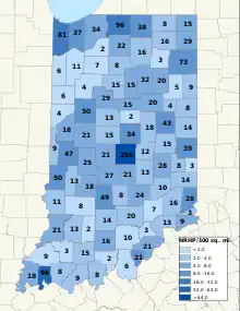 This is a list of properties and districts in Indiana that are listed on the National Register of Historic Places. There are over 2,000 in total. Of these, 44 are National Historic Landmarks. Each of Indiana's 92 counties has at least two listings.