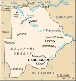 This is a list of the bird species recorded in Botswana. The avifauna of Botswana included a total of 615 species, as of May 2023, according to BirdLife Botswana's Checklist of Birds in Botswana, supplemented by Avibase.[1] Of them, three have been introduced by humans. None are endemic.