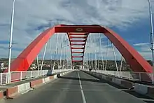 ![]() | 20 | Medgidia Road Bridge | Podul Medgidia | 131 m (430 ft) | 669 m (2,195 ft) | Arch Steel tied arch Bow-string bridge | DJ222 county road Danube–Black Sea Canal | 1983 | Medgidia 44°15′02.5″N 28°15′42.5″E / 44.250694°N 28.261806°E | Dobruja | [S 20] [26] |