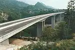 | 6 | Peračica Viaduct | Viadukt Peračica | 110 m (360 ft)(x2) | 370 m (1,210 ft) | Box girder Prestressed concrete Twin bridges 75+2x110+75 | 2007 2011 | Ljubno 46°19′10.8″N 14°14′28.1″E / 46.319667°N 14.241139°E | Upper Carniola | [25] [26] | ||