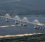 ![]() | 5 | General Rafael Urdaneta Bridge | 235 m (771 ft)(x5) | 8,678 m (28,471 ft) | Cable-stayed Concrete deck and cable-stays, 6 concrete pylons 160+5x235+160 | 1962 | Maracaibo 10°34′28.1″N 71°35′30.9″W / 10.574472°N 71.591917°W | Zulia | [S 5] [11] [12] | |