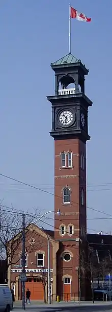 Narrow towers rising above many fire station buildings are hose towers, for purpose of cleaning and drying fire hoses.[1][2] But some have fire lookout towers, some have bell towers or clock towers and some have firefighting training towers or "drill towers".