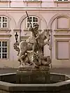 Built in the mid-17th century in the Grassalkovich Palace garden the sandstone figure of Saint George is modeled after its patron, Archbishop of Esztergom Juraj Lippay. It was moved to its current location in 1930. Dragon heads were later reconstructed by Alojz Rigele. The fountain features in local legends. |
