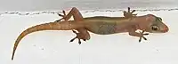 Geckos are lizards found in warm climates throughout the world. They range from 1.6 cm to 60 cm. Geckos are unique among lizards in their vocalizations, making chirping sounds in social interactions with other geckos. Geckos are the second most species rich group of lizards with close to 1,500 different species worldwide. All geckos, excluding the family Eublepharidae, have no eyelids and instead have a transparent membrane, the brille, which they lick to clean. Many species will, in defense, expel a foul-smelling material and feces onto their aggressors. There are also many species that will drop their tails in defense. Many species are well known for their specialized toe pads that enable them to climb smooth and vertical surfaces, and even cross indoor ceilings with ease. Unlike most lizards, geckos are usually nocturnal and are great climbers. Geckos come in various patterns and colors such as purple, pink, blue, and black, and are among the most colorful lizards in the world.