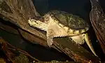 The Central American river turtle is the only living species in the family Dermatemydidae. It is a nocturnal, aquatic turtle that lives in larger rivers and lakes in Central America, from southern Mexico to northern Honduras. It is one of the world's most heavily exploited turtles and is classified a critically endangered species by the IUCN. It is a fairly large turtle, attaining a maximum size of 65 cm (25 inches) in carapace length, and can weigh in the range of 20 kg (44 lbs). They have a flattened carapace, that is usually a solid grey or almost black in color. Their plastron is normally cream colored.