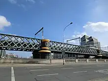 ![]() Loopline bridge at night (prior to removal of advertising hoardings), with Butt Bridge in foreground, and Custom House in background | |