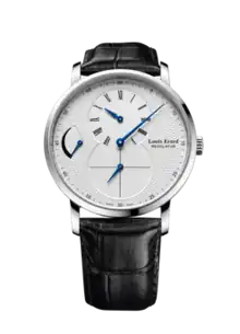 Founded in La Chaux-de-Fonds as a watchmaking school[2] in 1929, Louis Erard first sold watches under its brand in 1931l.[3] In 1991, the company was sold and production moved to Le Noirmont. By 2003,[4] the company was sold again and relaunched. Using mechanical movements from Sellita and Valjoux, Louis Erard has shipped over 200,000 watches from Le Noirmont,[5] including collaborations with Leeds United Football Club[6] and Ultima Sports sports cars. Louis Erard continues to make watches with a regulator layout.[7] In this layout, the hour, minute and second hand all pivot around different points. This layout was designed in mid-18th century for master clocks to offer the most accurate time readings available. In 2020 the brand contracted high-end watchmaker Vianney Halter who then designed "Le Regulateur" complication piece, which features amongst Louis Erard 'Excellence' watch collection.