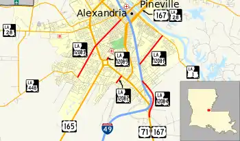 Louisiana Highway 1208 (LA 1208) is a collection of five state highways which serve Alexandria in Rapides Parish.