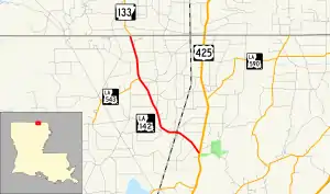 Route of LA 142 highlighted in red