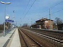 ![]() Station building of the Berlin–Dresden railway with station forecourt, 2012 | |||||||||||