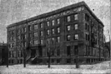 The building faced 130 feet (40 m) on North Capitol Street, and was 80 feet (24 m) deep on the M Street front.[2] Rust Hall was a five-story structure. It contained 115 rooms, of which 15 were for public use. The building accommodated 100 people and provided modern appliances. It was heated by hot water and lit by electricity generated by its own engines and dynamos. It was furnished with elevator and iron stairways. A telephone system connected the institution with the main office. Henrietta A. Bancroft served as chairman of the building committee. Charles W. Gallagher was treasurer and president of the National training school when the building opened.[3]